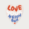 Heart-shaped sticker with 'Love Your Neighbor' text
